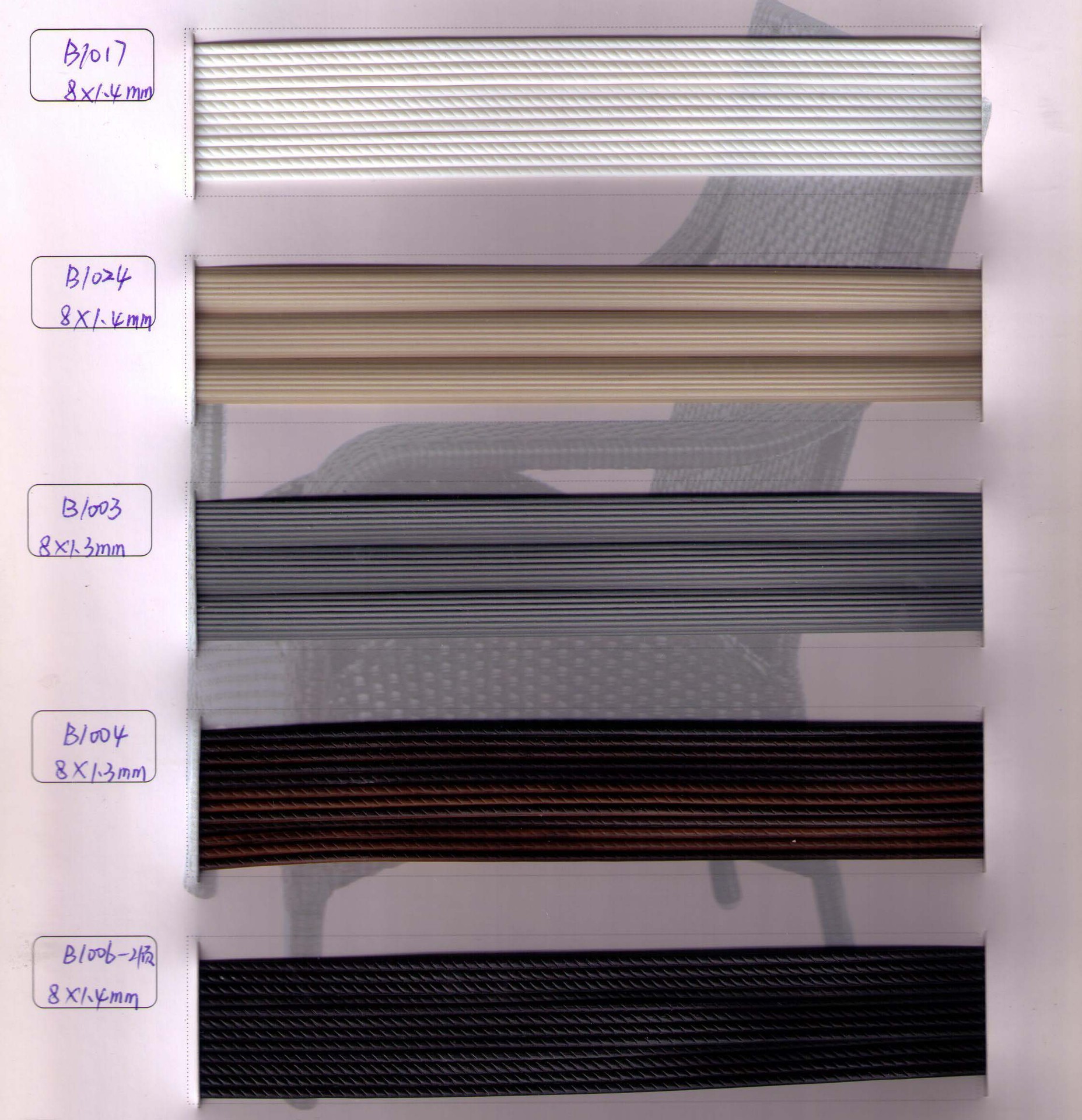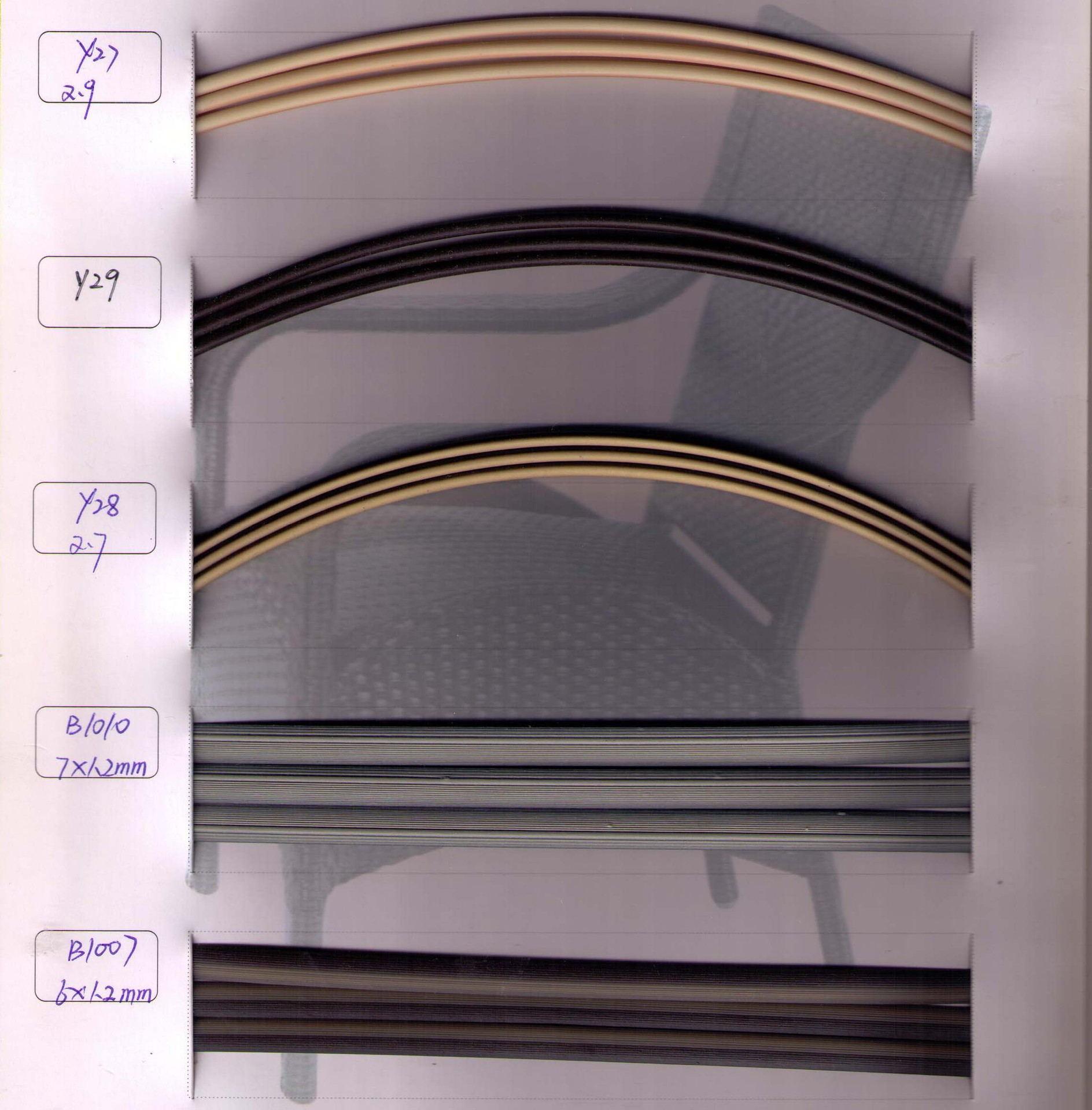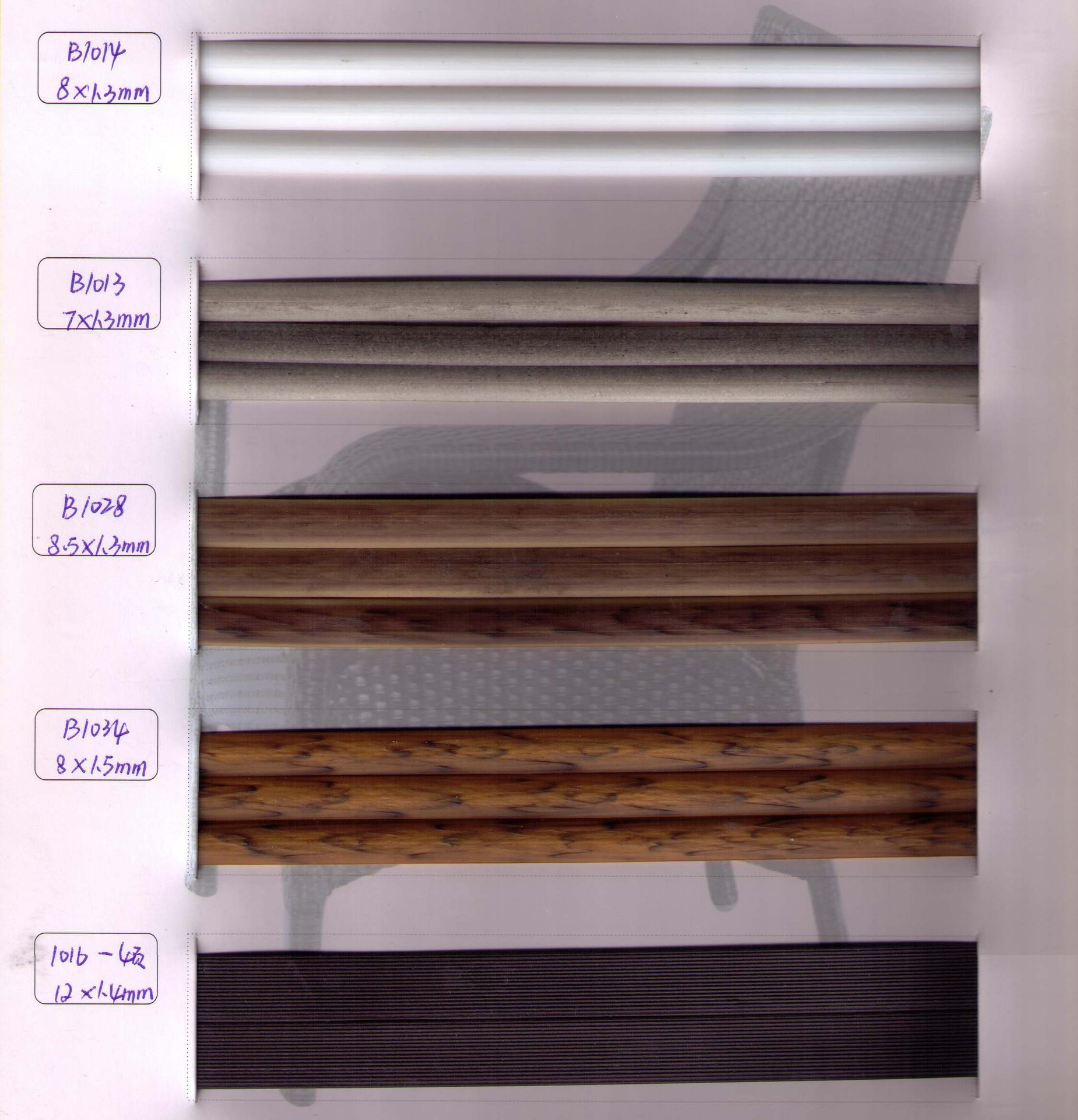 藤条:一般分为真藤和PE藤,户外PE藤较为常用,真藤产品只宜放置室内使用。PE藤又分为扁藤和圆,扁藤较为常用,圆藤因宽度较细编工相对费时,价格要超出扁藤编织价格的1/3,扁藤一般的厚度为1.2、1.3、1.4MM,宽度一般为6至12MM,圆藤一般直径是2.6至3.0MM,藤条的颜色分纯色和混色,有纹路和无纹路,其中咖啡色用的最多,也是混色最多的一种。由于订料原因,单件或者小批量要选择工厂现有藤色,如数量较多,可批量订藤,或者按客户需求让藤厂调色打版。