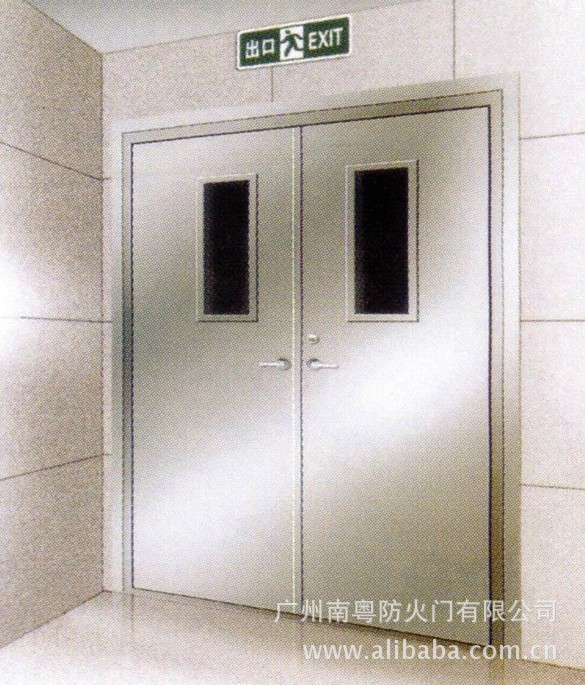 6.钢质防火门的结构特点:钢质防火门是由门框、门扇通过合页连接形成的,门上应配置闭门器、防火锁,双扇门还应加装暗插销(装在固定扇一侧)和顺位器,以防门扇中缝的搭叠。如门有上亮,门扇需加装玻璃,应加装具有与门同等防火极限的防火玻璃。由于钢板幅面尺寸的约束,单扇门板在门面无接缝的情况下,门宽可制作尺寸为≤1200mm。甲乙丙级防火门内部填充隔热系数不同的不燃材料加工而成,甲乙丙级门厚度均小于45mm。门框结构有单双止口的两种断面。异型大断面主要是为框包墙结构设计的。具有高隔音、气密性要求的防火门多采用四面框(下槛带止口并加设密封槽,槽内加装氯丁橡胶条。我厂提供的防火门是可通过消防验收,可提供一切证明。