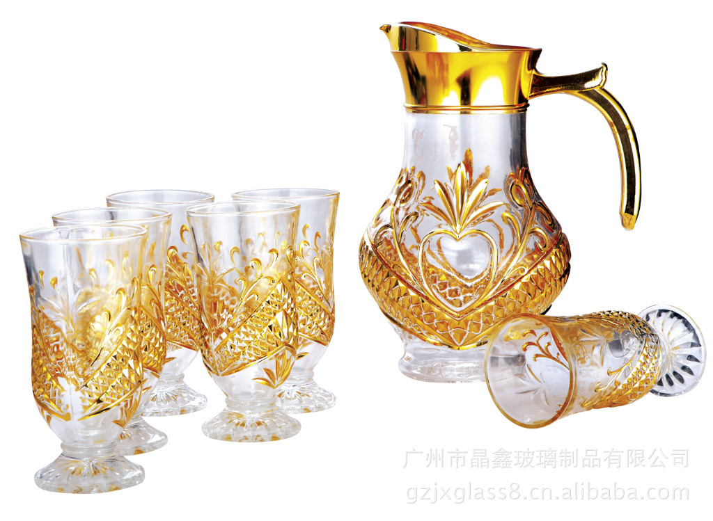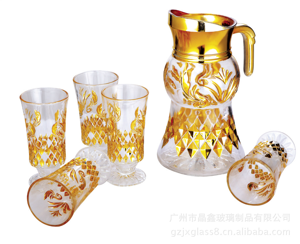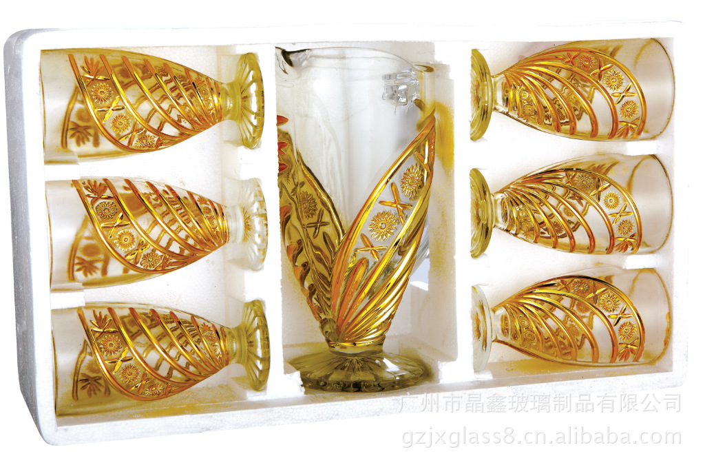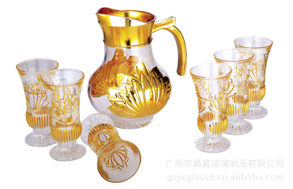 电镀工艺玻璃水/酒杯壶刻杯壶7件套ITEM NO.DK01出口热销
