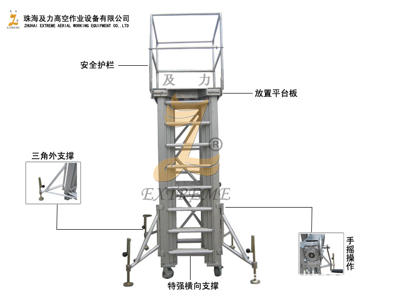 手动升降铝合金架,是珠海及力高空设备有限公司自主研发的