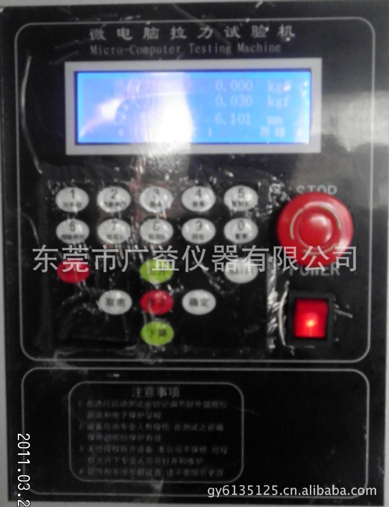 本拉力測試機,以高品質的进口馬達、軸承、絲杆為傳動機構,是根據市場需求而設計的一種高檔型LCD數位顯示、微電腦系統控制、高性能的機械結構為主體。整機以低功耗、大動力、操作簡單、構造小巧準確性高、功能齊全為核心。主要用於測試電線、金屬、非金屬、橡膠、建材……等之拉伸、伸長、剝離、位移、撕裂……等多種試驗(可配夾具一套,其他另購).