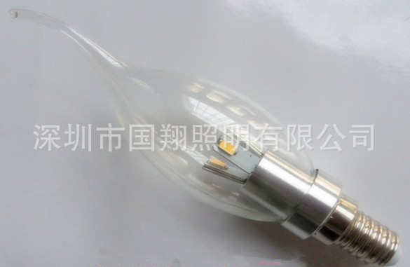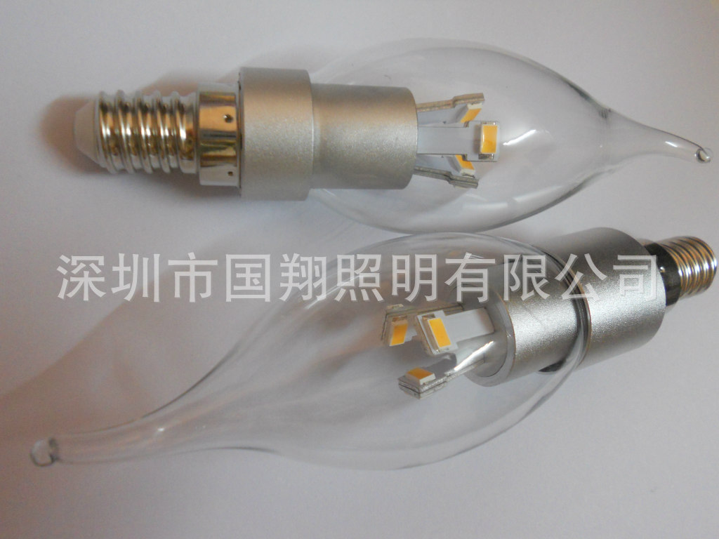 本公司最新产品:LED蜡烛灯360°发光,光效高,精致美观。3W蜡烛灯 3W蜡烛灯:3W蜡烛灯:3W蜡烛灯:4W蜡烛球泡灯:4W蜡烛球泡灯:3W和4W蜡烛灯外观对比:左:4W蜡烛灯,右:3W蜡烛灯4W蜡烛灯:3W蜡烛灯尖泡:3W蜡烛灯拉尾: