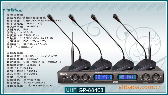 BEIQI GR-8840B是我公司研发的U段会议系列中一款性能稳定,接收灵活,无死点,防啸叫,有效距离50-80米。