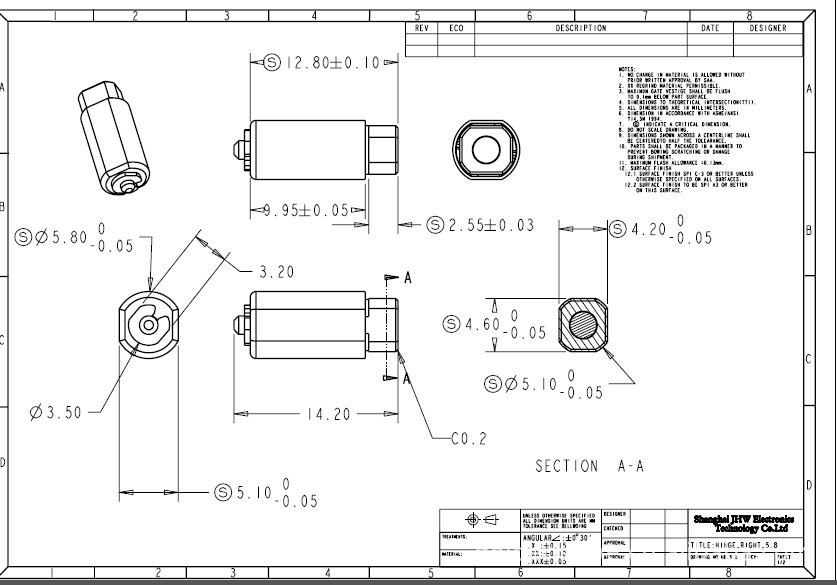 产品名称:¢5.8套筒式左、右旋手机转轴