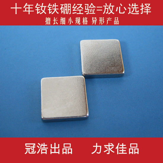 冠浩磁业公司专业致力于烧结钕铁硼(NdFeB)磁钢的生产销售,产品线丰富,除了方块磁铁、圆柱磁铁、圆片磁铁、圆环磁铁、瓦片型磁铁、球型磁铁等常规性磁铁外,公司在高精密度磁铁、特殊异型磁铁方面具有较强的生产加工能力,拥有批量化生产的成功经历。公司还不断根据客户需要,加强磁钢产品线向纵深发展,多方位开发各类磁性器件如磁性挂钩、磁性胸牌、磁性夹子、磁性工具等。产品主要被销往韩国、印度、土耳其、意大利、法国、芬兰、美国等国际市场。