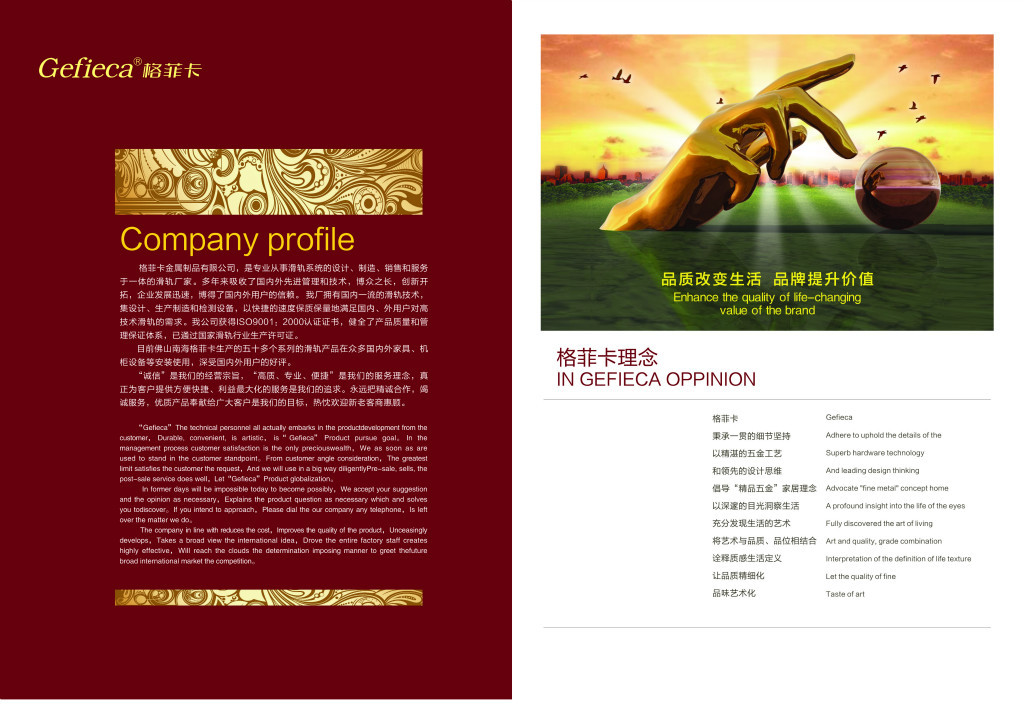 佛山市格菲卡金属制品有限公司,是一家专业生产家具滑轨等家具五金产品的厂家多年来吸收了国内外管理及技术,博众之长,开拓创新,目前公司发展迅速,博得了国内外用户的信赖。
