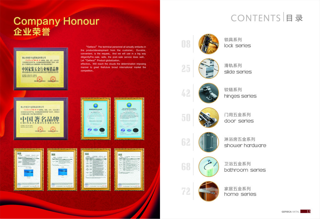 我厂拥国内一流的生产技术,集设计、生产制造和检测设备于一体,承诺以快捷的速度保质保量地满足客户对高技术滑轨的要求,我公司现已获得ISO9001:2000国际质量体系认证证书,健全了产品质量和管理保证体系,已通过国家滑轨行业生产许可证。目前我们公司的五十多个系列滑轨产品及其他五金件产品广泛应用于国内外家具、五金钣金制造、机械设备、金融设备等行业,深受客户好评与青睐。