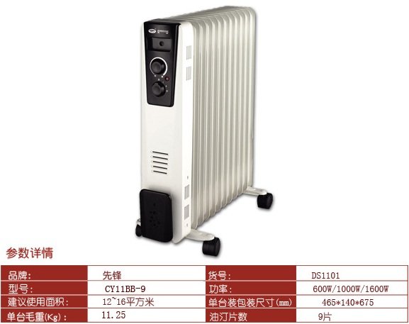 !!!最后告诫消费者:买油汀机切不可图一时低价,而不去认真检查油汀机的材质。购买任何小家电,都要质量、安全第一。先锋牌是你最好的选择