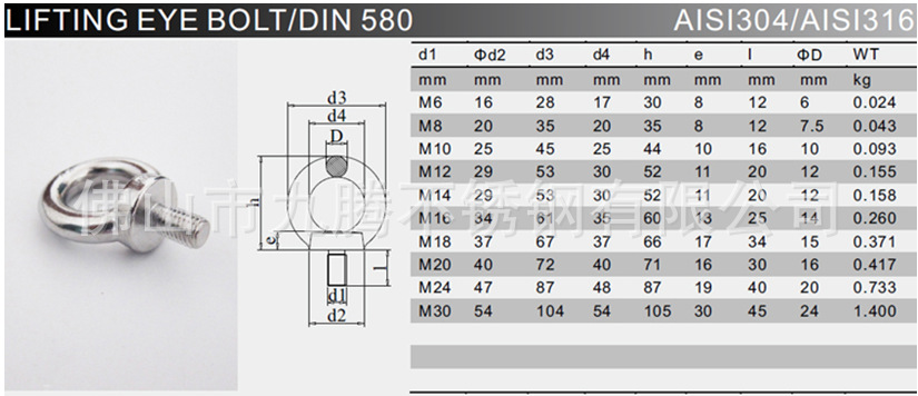 吊环螺丝规格参数表