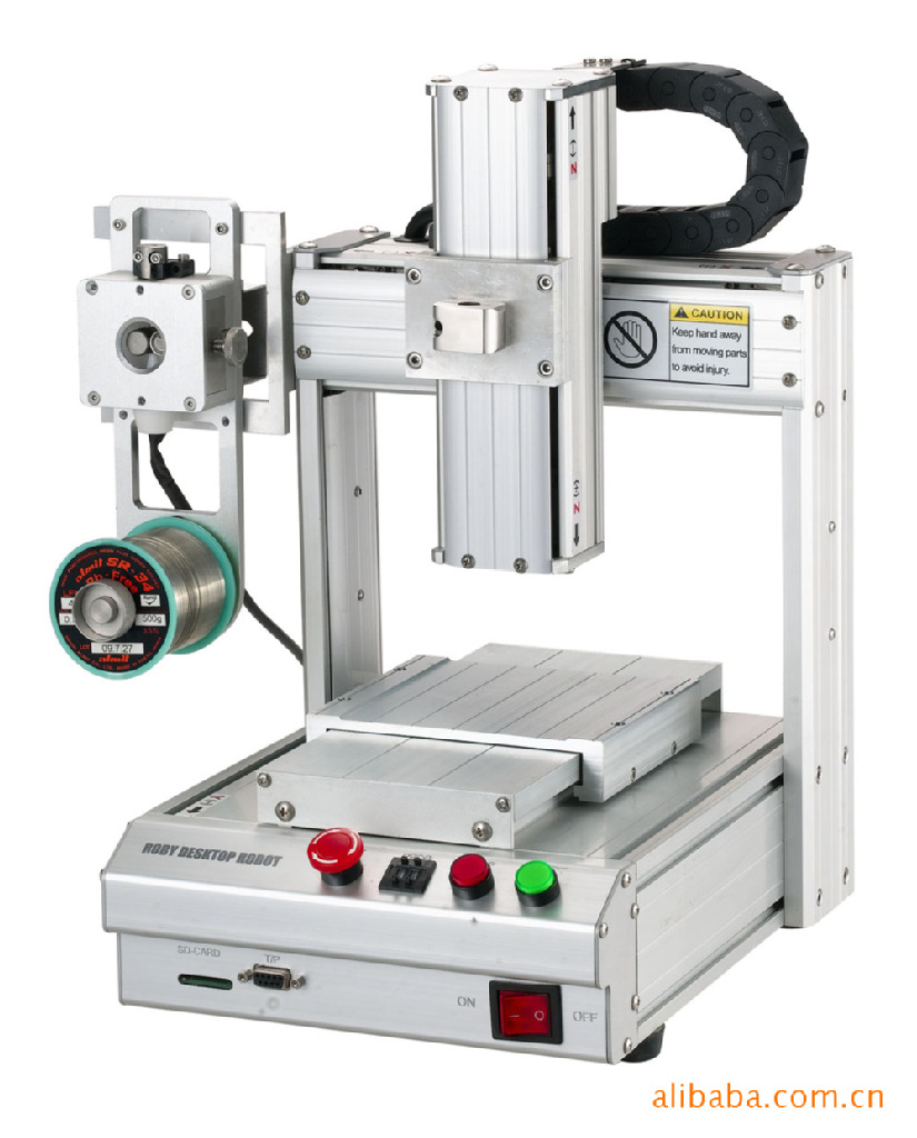 自动焊锡机介绍:自动焊锡机是将繁琐复杂的焊接工序包揽下来,替代和解决了人工操作出现焊接不均匀或焊接不牢的情况,使各类电烙铁难以有用武之地。本产品主要应用在各类电子元件的焊接,如线路板上各电子元件焊接,只要编好程序,做好治具,就能生产出好的产品,降低人的劳动强度,提高产量,节约生产成本。