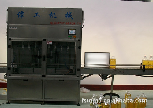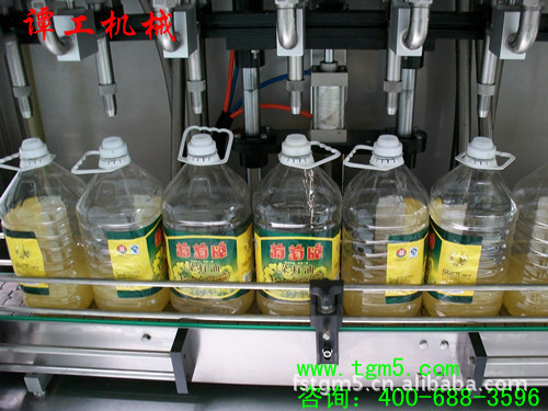 全自动食用油灌装机采用西门子PLC,精确控制各气动执行元件来完成灌装过程.该机集光,机,电,气于一体,定量准确,灌装精度高,操作简单,维护方便,适合各种规格瓶型的油类液体灌装,采用防滴漏灌装头,另加防滴漏接液盘,使灌装过程中不污染瓶自外壁.设备采用优质SUS304不锈钢制造,符合卫生要求.按灌装方式又分为:封闭式和开放式食用油灌装机两种.封闭式食用油灌装机灌装过程与外界隔离,保证灌装的卫生要求, 灌装速度为:快慢双速灌装,灌装速度可调,杜绝溢瓶现象。采用压力式灌装,无需配装高位罐,简化了安装工序,提高了灌装效率。广泛应用于花生油,菜籽油,色拉油,橄榄油,调和油,豆油,香油,花椒油等植物油的自动化包装生产。