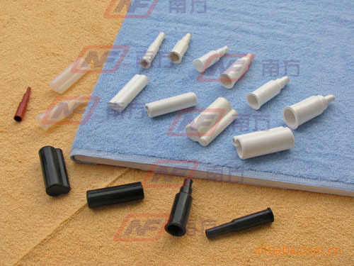 硅胶电极护套,属硅橡胶模压制品,主要与霓虹灯配套。使用的材料是无毒环保、阻燃、耐180℃高温的硅橡胶;硬度在50-60度(绍氏硬度A)左右;颜色是黑色和白色。可根据客户的图纸设计开模另做。 目前我司生产的电极护套尺寸是:单双筒Φ 10、Φ 13、Φ 16、Φ 18、Φ 20mm。