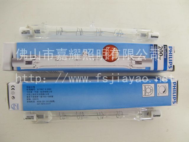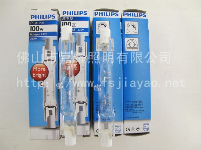 飞利浦碘钨灯管规格有:100W,150W,300W,1000W太阳灯管,草坪灯专用光源。广告、背景、效果专用