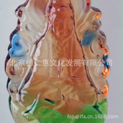 琉璃,亦作“瑠璃”,是指用各种颜色的人造水晶为原料,采用古代青铜脱蜡铸造法高温脱蜡而成的水晶作品。其色彩流云漓彩、美轮美焕;其品质晶莹剔透、光彩夺目。这个过程需经过数十道手工精心操作方能完成,稍有疏忽即可造成失败或瑕疵。琉璃被誉为中国五大名器之首(金银、玉翠、琉璃、陶瓷、青铜)、佛家七宝之一,到了明代已基本失传,只在传说与神怪小说里有记载,《西游记》中的沙僧就是因为打破一只琉璃盏而被贬下天庭的。在中国佛教中,琉璃的地位非常特殊。《药师琉璃光如来本愿经》中记载:药师佛为人消灾延寿,曾发十二大愿为众生求得离苦得乐,其第二大愿为“愿我来世得菩提时,身如琉璃,内外明澈,净无瑕秽。”可见琉璃是一种人格、一种精神、一种境界的象征。