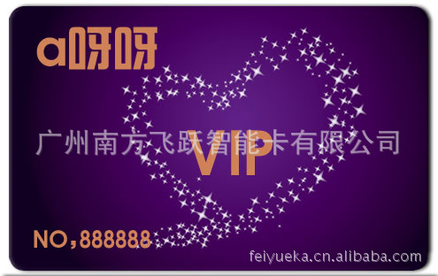 您的事业需要一批高质量的PVC购物卡吗?想要这些卡给你带来意外的惊喜吗?漂亮的卡既能促进消费,又能充分展示你的企业品牌文化内涵。飞跃智能卡有限公司,为您专业打造漂亮大方、高档的PVC购物卡!
