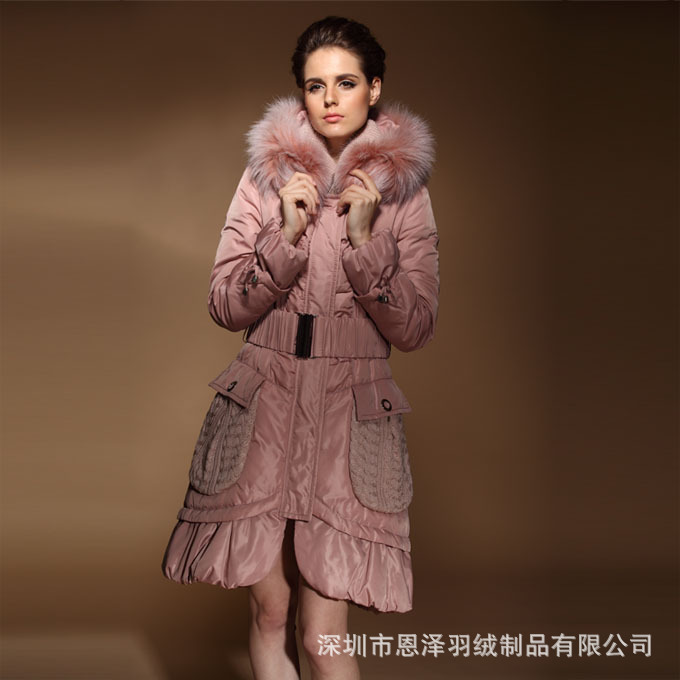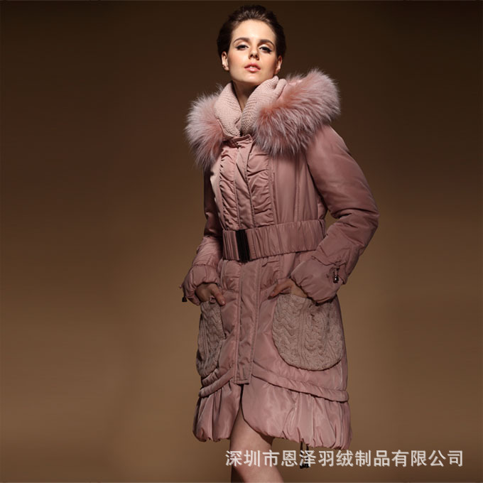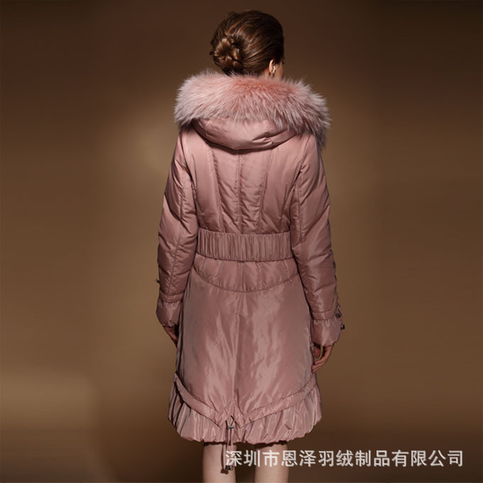 深圳贴牌订做 90%白鸭绒 超大保暖毛领 纯色长款女式羽绒服