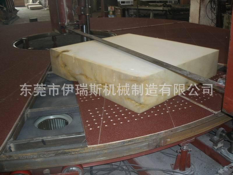 海绵圆盘平切机主要是把多个块状海绵放在工作台上同时进行切割,采用自动数字控制,通过设置控制箱的数值,来切割需要的海绵厚度;工作台可以前后旋转,旋转速度可以任意设置,连续切割,使生产效率更高。(工作台也可增加吸风装置)