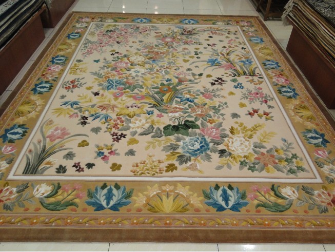 产品由编织工人手工编织而成,以真丝为原料,再加上后继水洗/平整/等多道复杂工序全部由工人手工完成。做到毯面平整,细腻,图案生动,质地柔软。每一道工序都有专人严格把关。让高品质产品走向国内外,真正做到,高性价比。