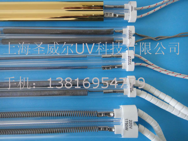 红外辐射光源的灯丝温度决定辐射强度波长,通常将红外辐射源分类为:长波-中波-快中波-短波四种形式,又分为单管、孪管两种结构,通过特制的灯丝,添加特殊物质可精确控制红外辐射输出波长。再配有金反射层时其辐射效果更高。