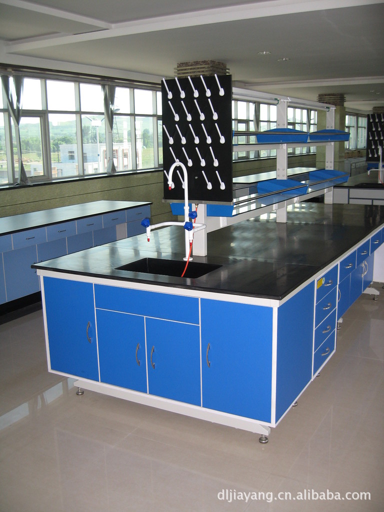 用材说明:1.台面采用品牌12.7mm厚实芯理化板,台面四周倒圆角,耐酸碱腐蚀。2.钢质柜体采用国产优质钢材。3.五金件:铰链及滑轨均采用国产产品。4.可选配木制试剂架、电源插座、水槽龙头、桌上型洗眼器及气体考克等配件。