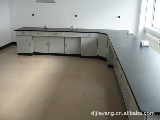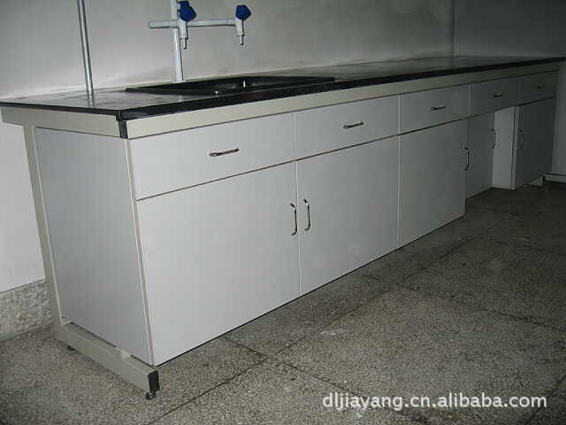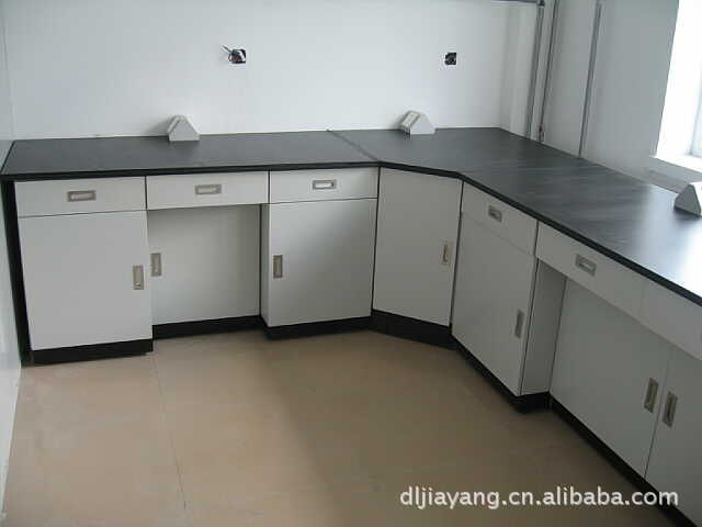 台面与柜体黏合成一整件,整张实验台固定在地面上,不可移动。