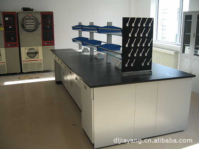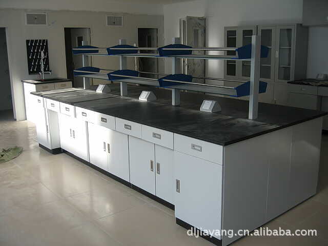 台面与柜体黏合成一整件,整张实验台固定在地面上,不可移动。
