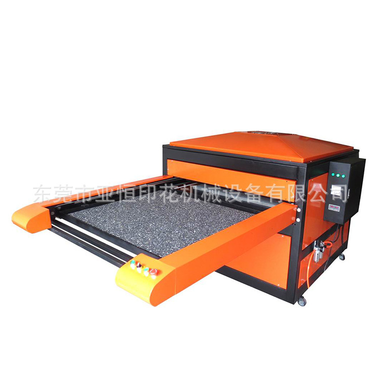 本机可将升华类,溶剂类油墨的采色图案与文字经热转印在棉、玻璃,陶瓷,麻、化织等织物上,还可进行植毛烫画和发泡印花工艺等热处理,方便实用。