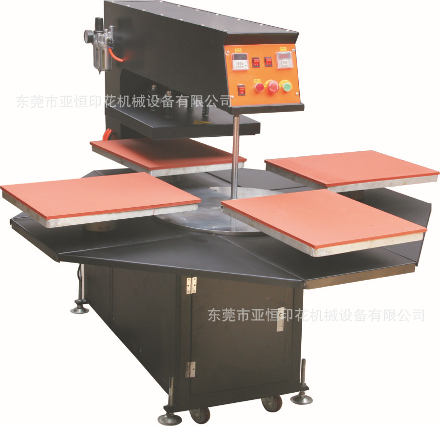 我工厂专业生产 ,各种自动四工位旋转式烫画机本设备可设置自动/半自动/手动作业,采用进口马达进口元件、自动限位、体积小、准确安全、可靠性高、使用寿命长!