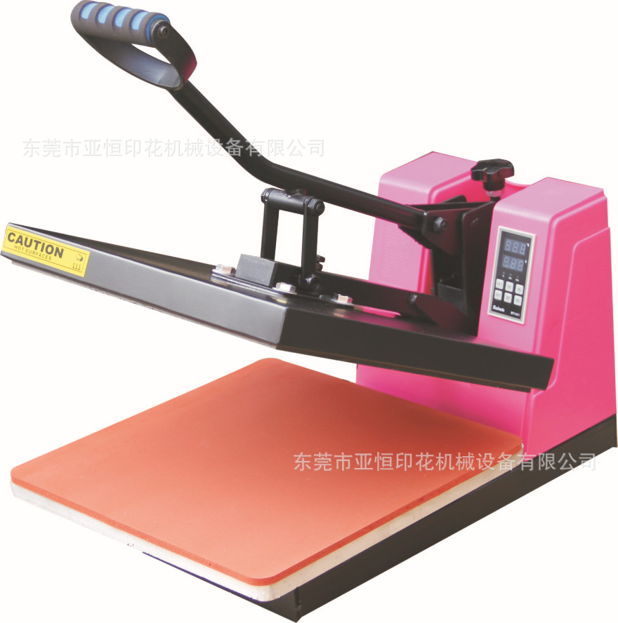 维修:1.气压:如压力不够或太大,可调气瓶上调压阀,向(+)方向加大压力,向(一)方向减少压力(请注意气瓶是否有润滑油)。2.温度:当设备定温度后发热板不发热或发热不匀,应检查电路温控器和热电偶,如热电偶断,则温控器上有一个断线指示灯亮,则应更换热电偶。3.时间:当开关至“手动”时,按动“手动启动”不会下压则检查“手动”开关,当开关至“自动”时,台板到位时不会下压,应检查箱内微动开关接触点是否到位,如不们位则应该调整。4.如出现质量问题,请及时与本公司联系。 技术参数电压: 220V/110V温度: 0-399度功率: 2000W时间: 0-99小时工作台尺寸:(38*38CM) (40*40CM)(40*50CM)(40*60CM)(60*80CM) (100*120cm)重量: 125KG本机可将升华类,溶剂类油墨的采色图案与文字经热转印在棉、麻、化织等织物上,还可进行植毛烫画和发泡印花工艺等热处理。方便实用!