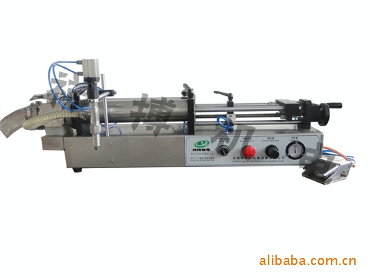 该机为半自动活塞式液体灌装机。