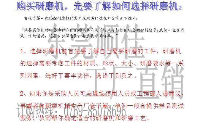 东莞顺佳研磨科技有限公司,专业生产、经营抛光设备与多种化工材料,集“产、供、销”于一体。公司引进日本技术,产品应用于金属表面处理,已通过ISO认证,SGS认证。