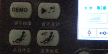 | 头部 头部气压按摩功能启停键 手臂 手臂气压按摩功能启停键 气囊强度 按此键进行气囊强度的调节 全程按摩 按一次此键启动背部全程按摩,再按一次则关闭背部全程按摩。 局部按摩 按一次此键启动背部局部按摩,再按一次则关闭背部局部按摩。 揉捏 揉捏功能启停键-5种力度可调节 按一次此键中等按摩力度启动全身揉捏功能,再按一次则停止揉捏功能。 揉捏功能可与捶打、拍打、指压功能结合使用 |