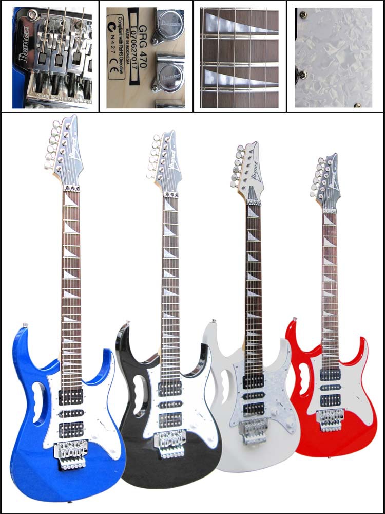 配置:连体电吉他,沙比利+枫木+桃花心,24品,全封闭旋钮,拾音器:双双,装饰:彩贝音点