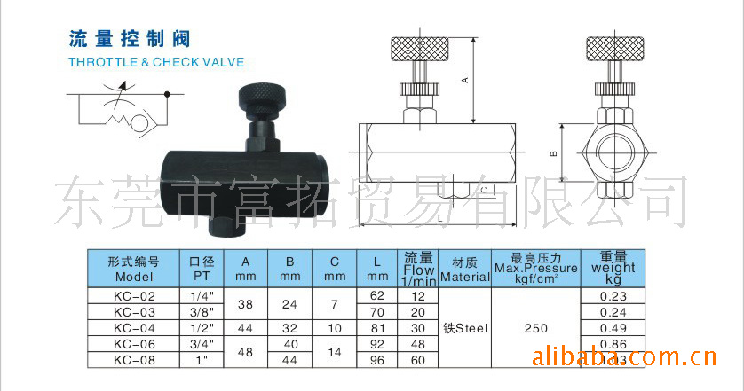 供应油压机械 单向节流阀 流量控制阀 管式单向节流阀厂家KC-03