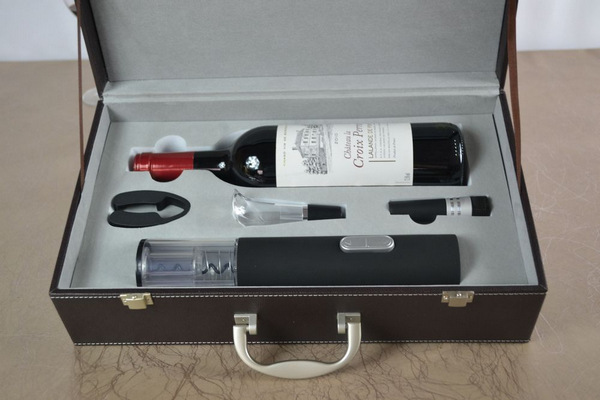 产品配置:干电池电动开瓶器、真空酒塞、割纸刀倒酒器