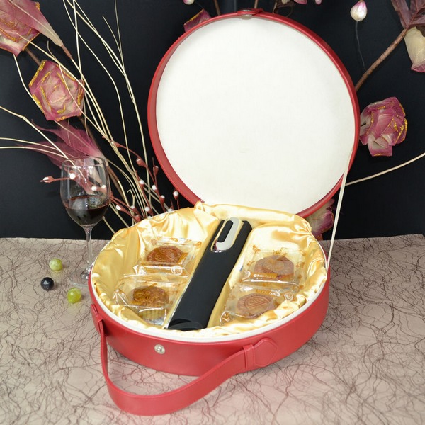 产品名称:中秋定制C款(高档红色压花皮盒)