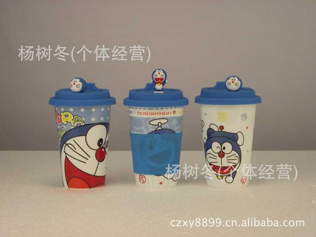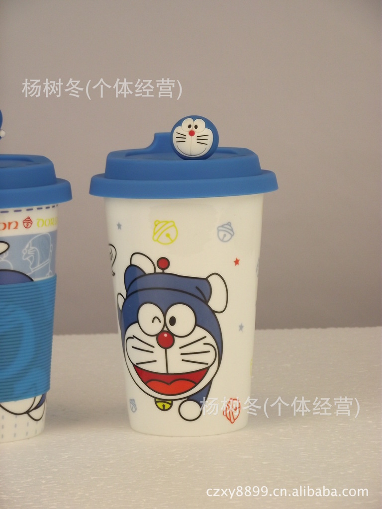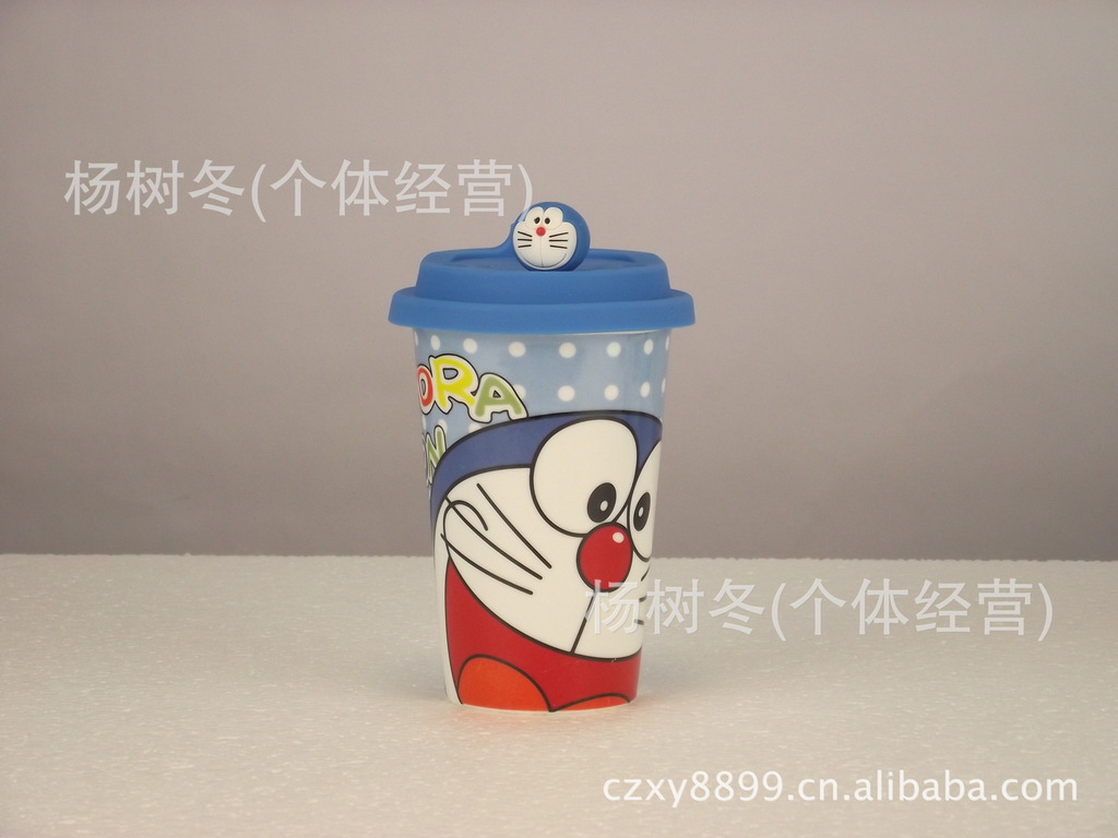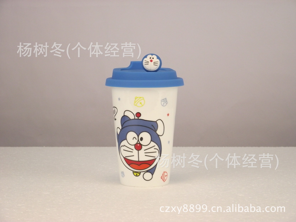 品名:卡通杯子 陶瓷杯带盖 马克杯 创意杯子 可爱 陶瓷水杯 机器猫