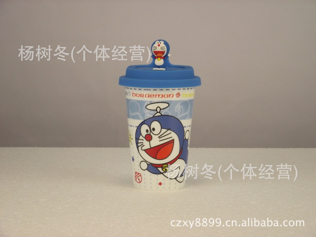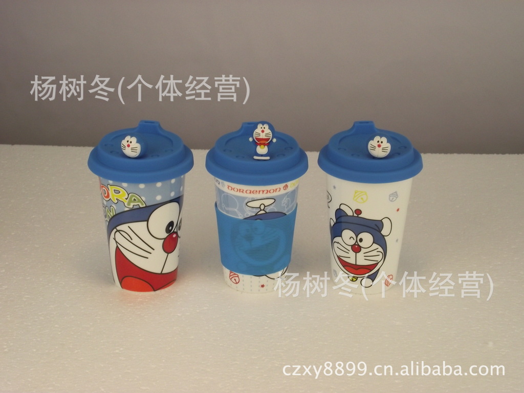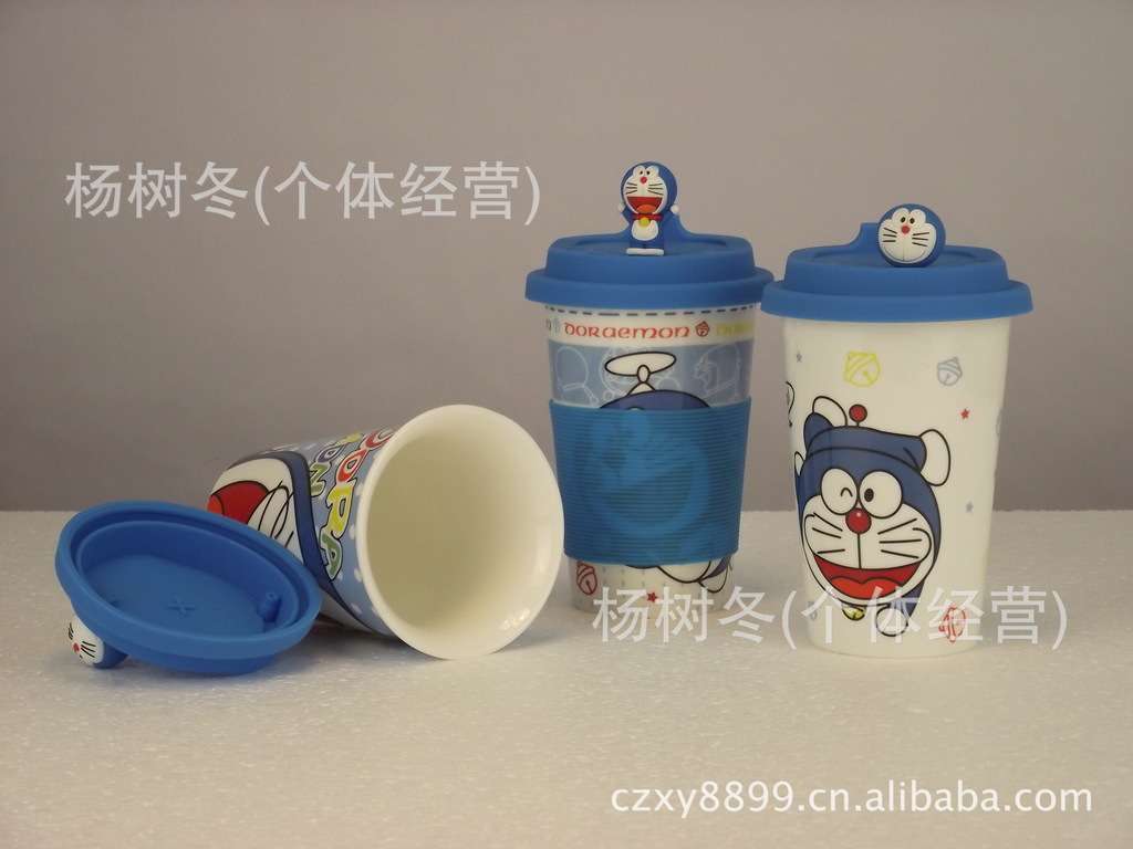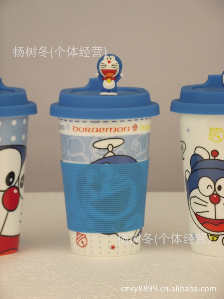 品名:卡通杯子 陶瓷杯带盖 马克杯 创意杯子 可爱 陶瓷水杯 机器猫