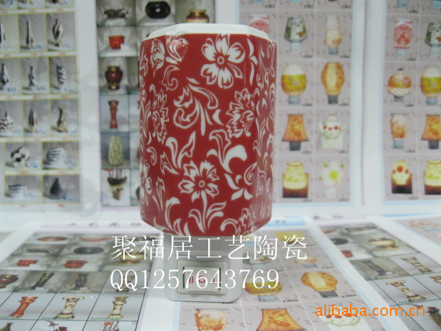 小夜灯分类 一:香薰小夜灯:以陶瓷材质为多,分为染色,非染色,雕花等系列。陶瓷小夜灯的顶部可以加一个小碟或者陶瓷顶部设计有凹槽,可以盛放精油,进而达到香薰的效果。