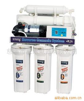 有增压泵,需要电源,有储水罐,一般为五级过滤,第一级为滤芯,第二和第三级为活性炭,第四级为用于宇航技术的RO逆渗透膜(此为核心),第五级为精致活性炭,主要用于改善口感.也可把第五级放置麦饭石滤芯,成为矿物质饮用纯水机.