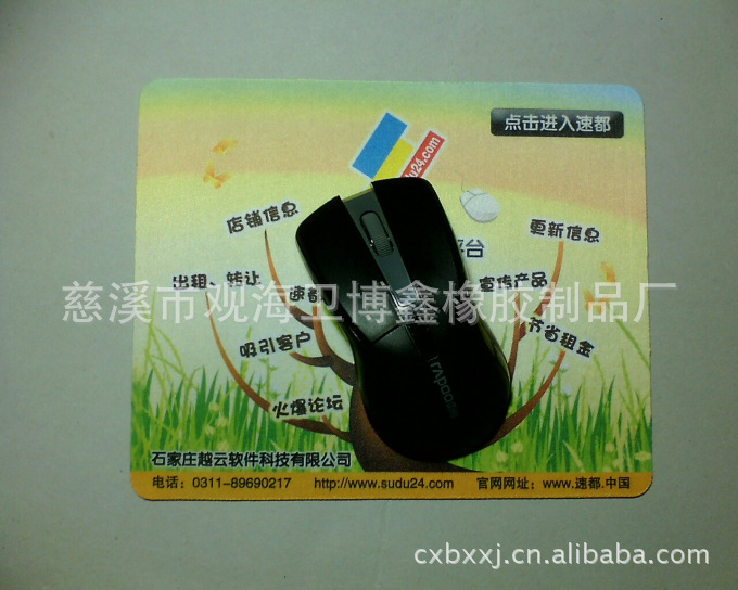 将广告置放到人们的手腕下。鼠标垫以其精美小巧的外型和方便实用的功能赢得了众多电子、网络、电器及食品厂商的青睐,成为企业广告宣传的一种重要形式。EVA广告鼠标垫特别适宜做广告,因为它价格便宜,印刷精美,广告幅面大,宣传作用强。