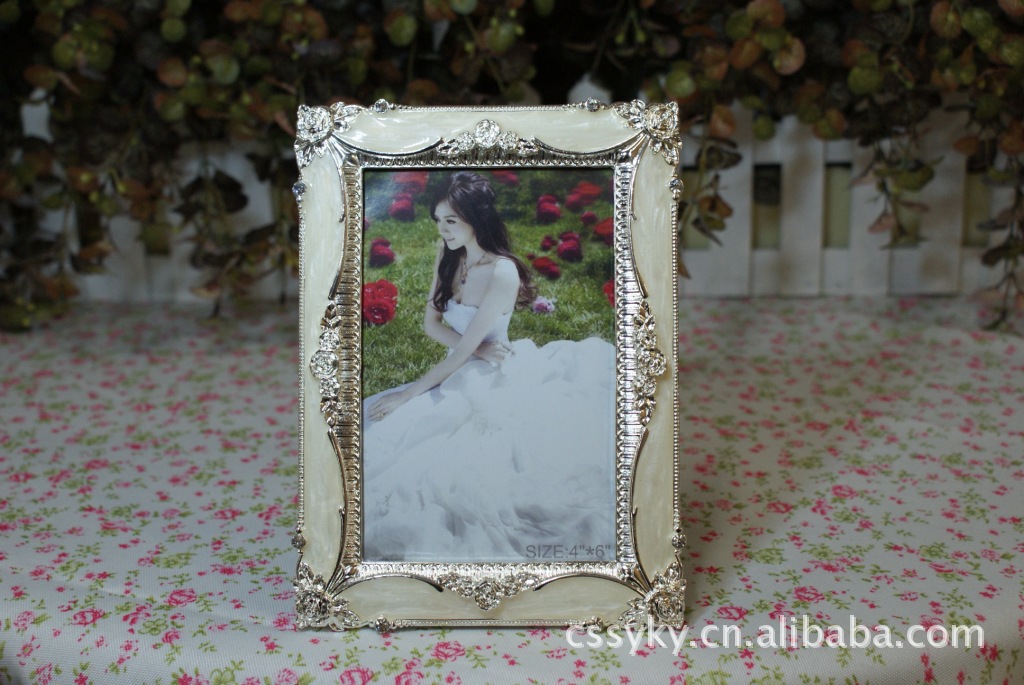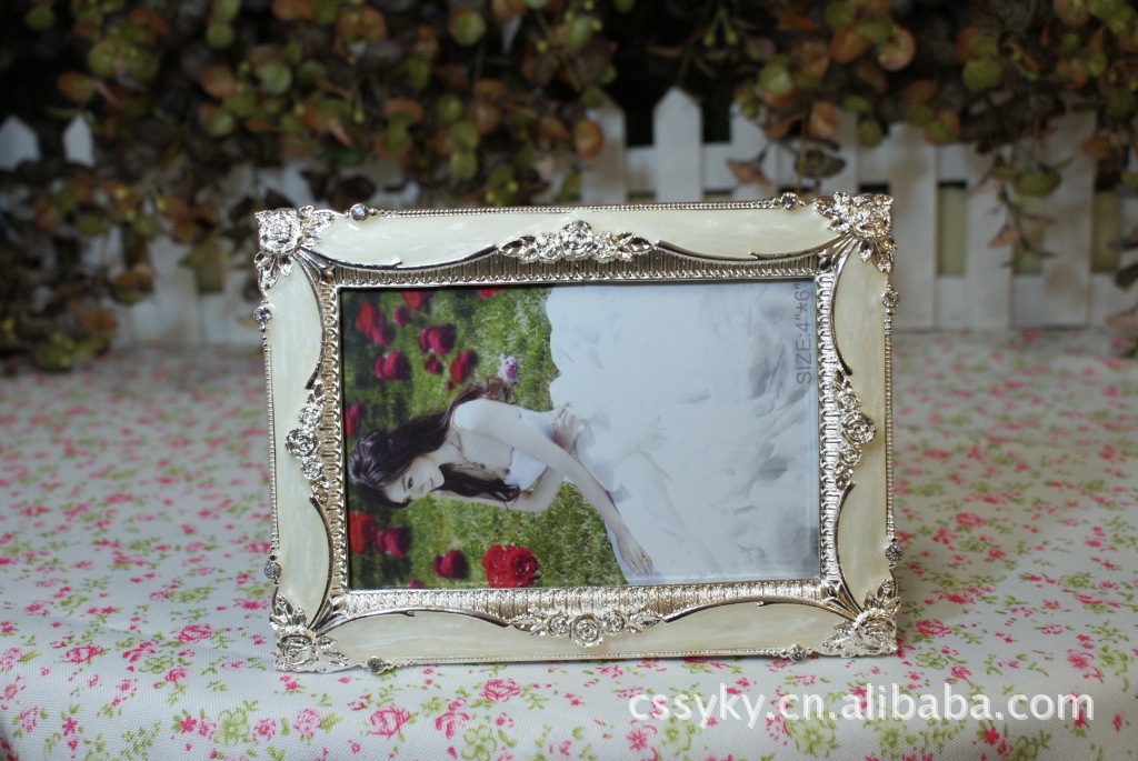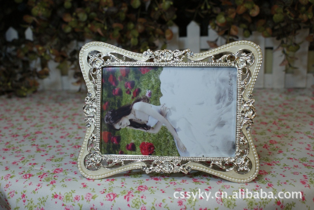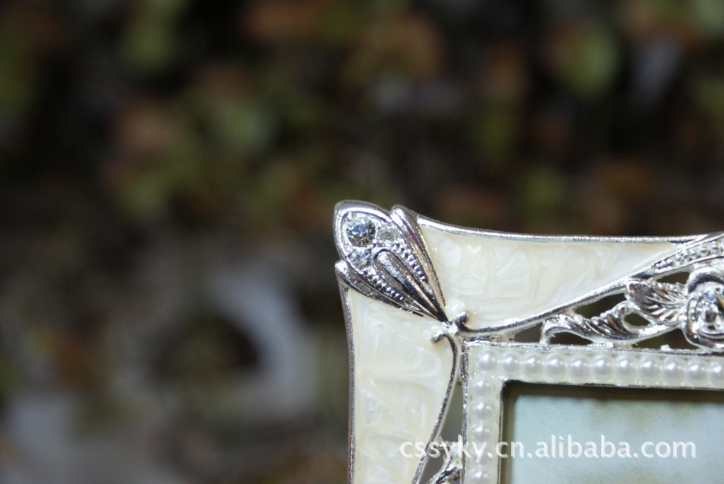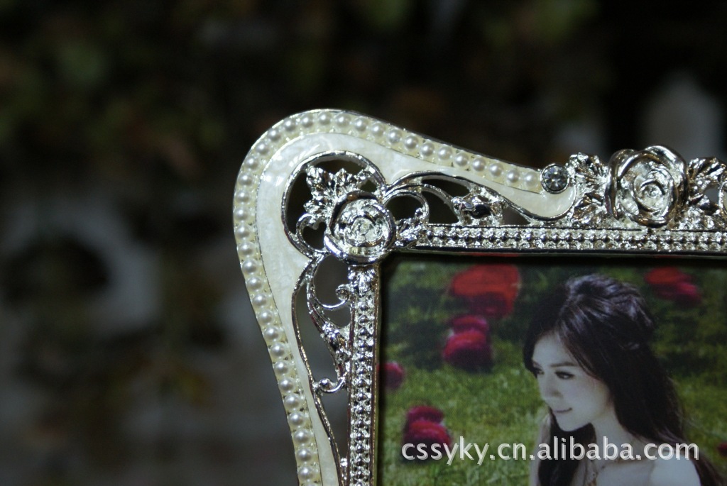 相框材质:锌合金 表面:进口水钻 镜片:工艺玻璃 后背板:绒布 后背扣:合金镶钻