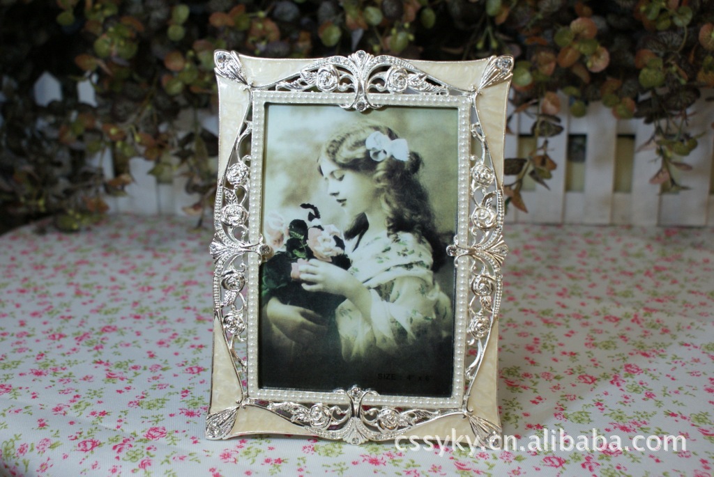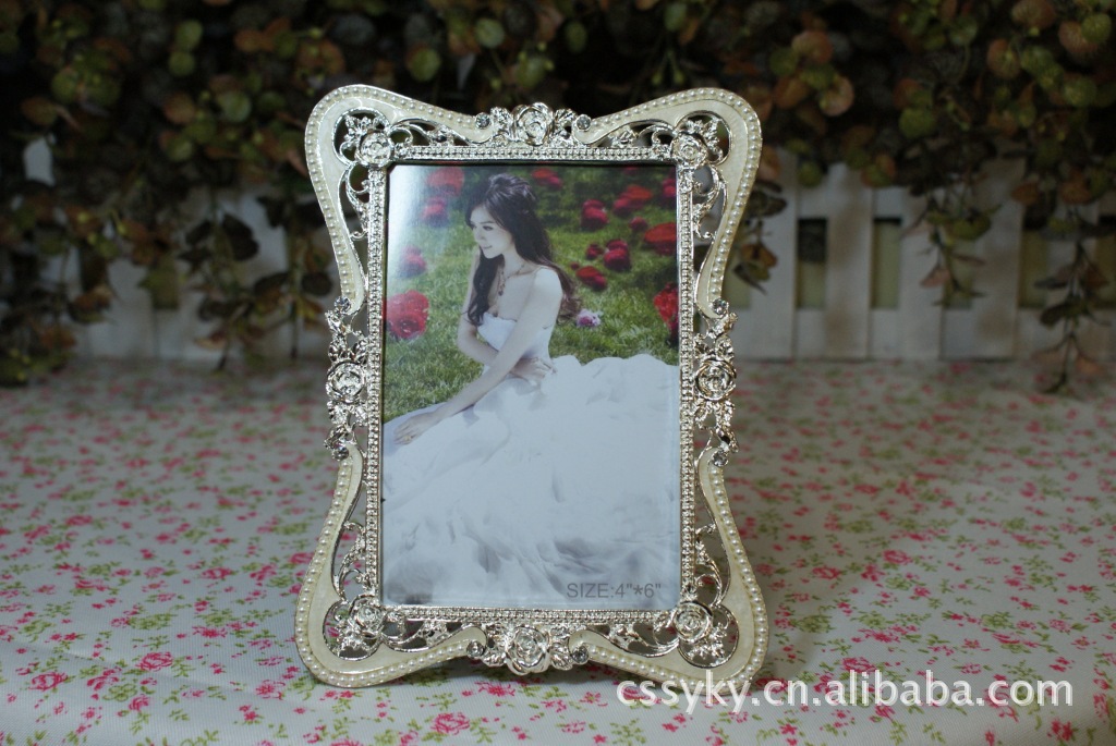 相框材质: 框架:锡合金 表面材料:珍珠 镜片:工艺玻璃 后背扣:合金镶钻