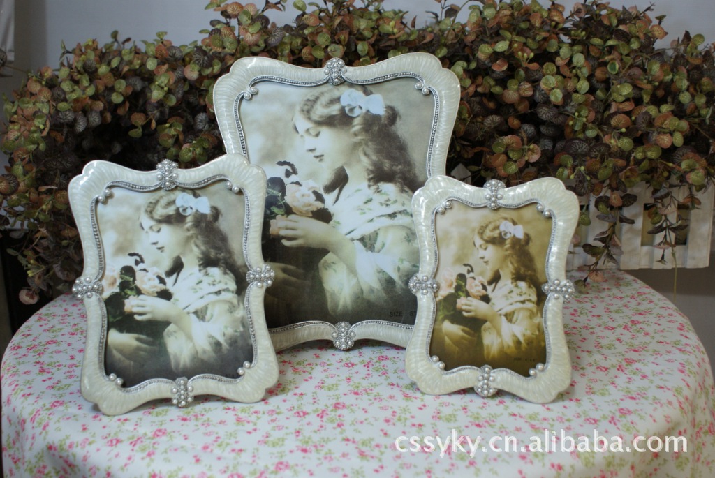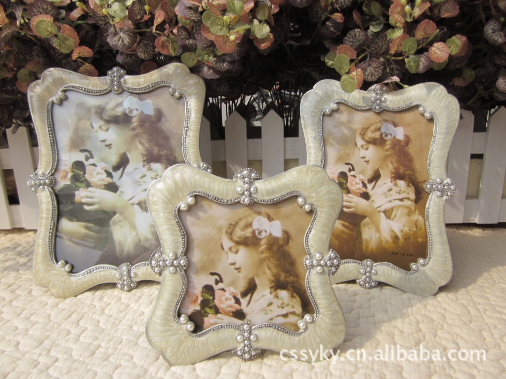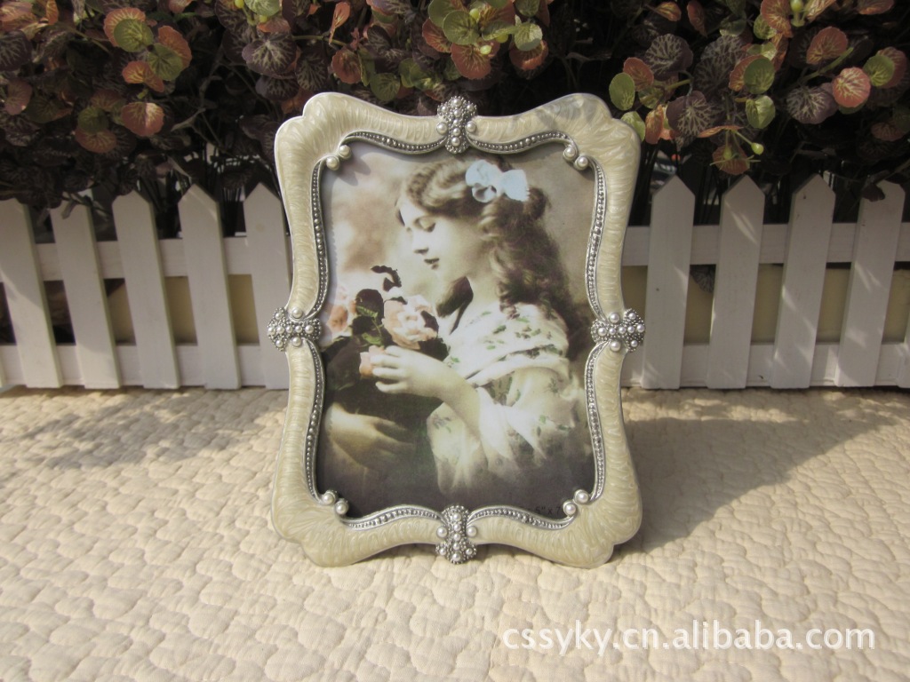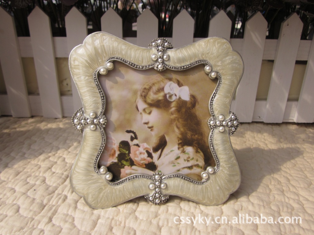 相框材质: 框架:锡合金 表面材料:珍珠 镜片:工艺玻璃 后背扣:合金镶钻