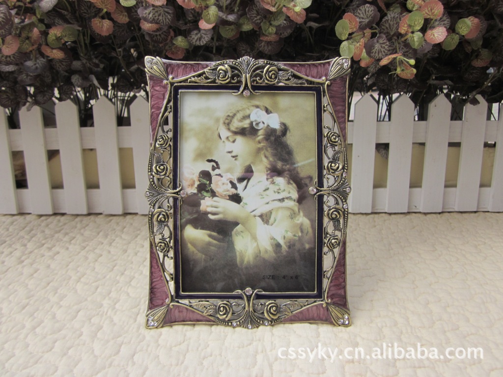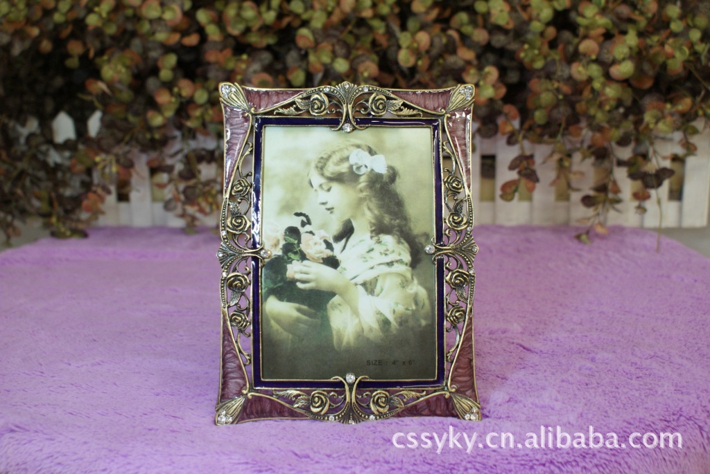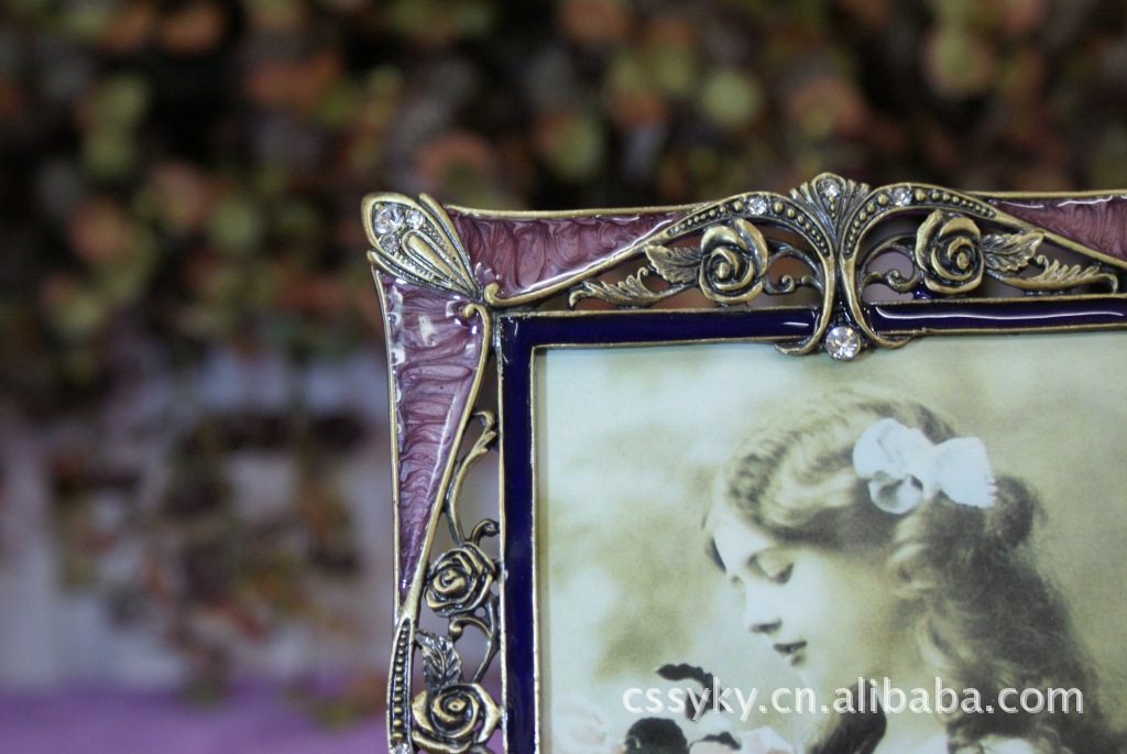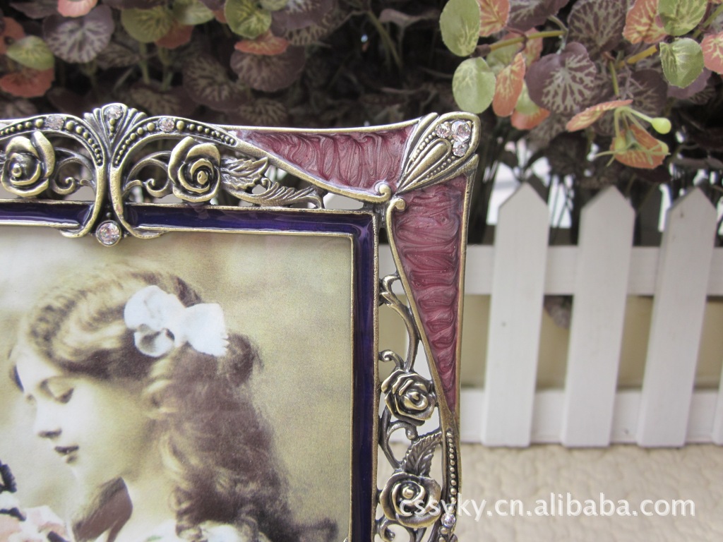 相框材质:锌合金 表面:进口水钻 镜片:工艺玻璃 后背板:绒布 后背扣:合金镶钻