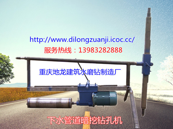 重庆地龙水磨钻(工程水钻机)主要适用于建筑基础钻孔,桥梁桥墩钻孔,挡土桩钻孔,抗滑桩钻孔,页岩钻孔,岩石钻孔,花岗石钻孔,石灰岩钻孔,钢筋混凝土钻孔,公路路桩钻孔,高速路隔离带路桩钻孔,质检取芯钻孔,隧道加固、市政工程施工等等。适用对象:页岩、岩石、花岗石、特坚矿石、石灰岩、钢筋混凝土等。本水钻机厂钻机一台也批发,以最便宜的价格,最高质的产品奉献给消费者。