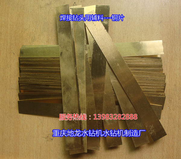 5:焊接钻筒时先将钻筒焊接面用打磨机打磨干净,涂抹焊粉,然后放置铜片,铜片上面放置钻头,钻头的焊接面也需要涂抹焊粉。