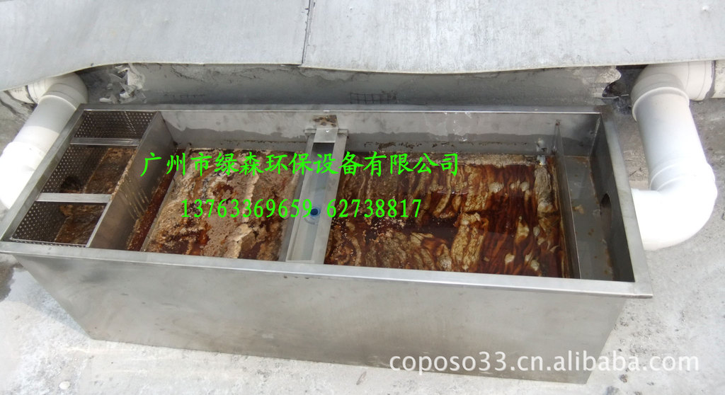 绿森全不锈钢全自动油水分离器设备是针对含油废水处理的环保高新产品,本公司生产的油水分离器采用了多项环保新技术,科学的处理流程和独特的结构设计,根据水与油的比重差,使油粒子在经过一定时间的缓流和隔板的碰撞后浮于水面上。餐饮油水分离器特有的多级处理和分离装置,采用斜板隔油技术和特殊的液位自动控制技术,不需任何动力和添加剂,就能自动地将含油废水中的混合油脂分离出去并集中到集油槽排放出去,处理后的废水排放达到国家的排放标准。
