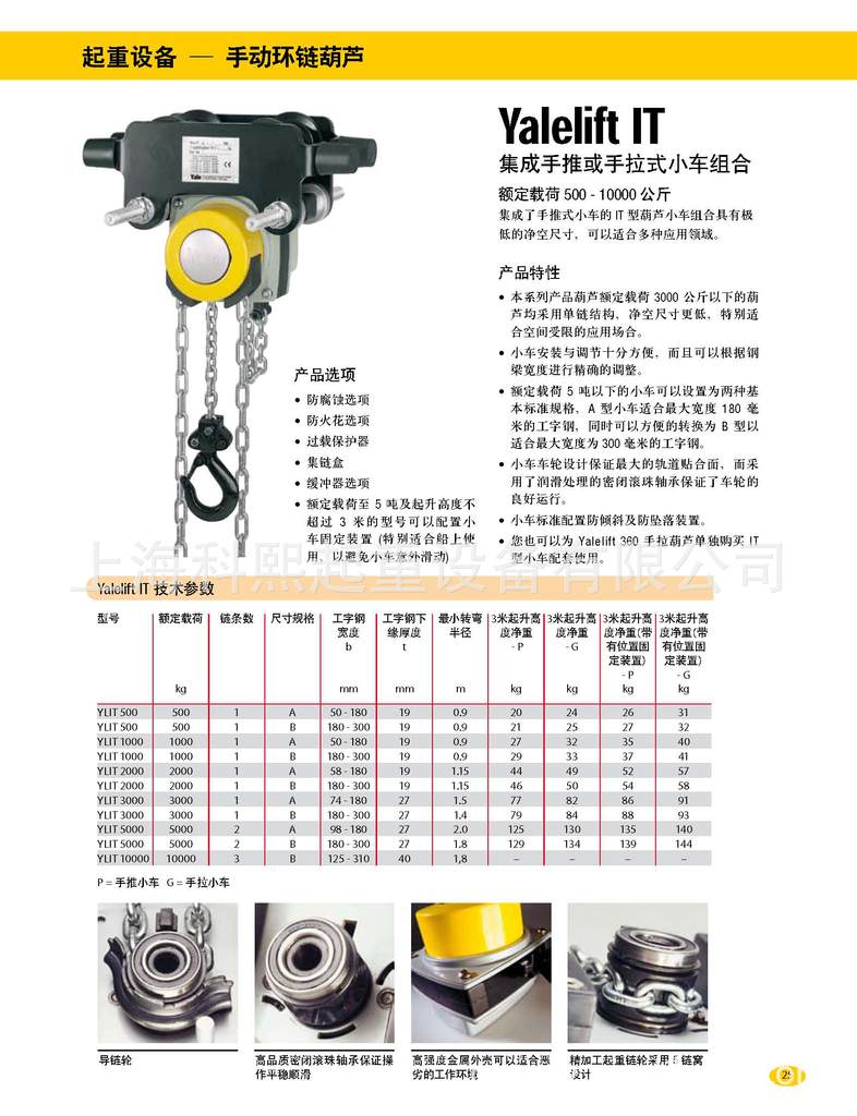 - 您也可以为 Yalelift 360 手拉葫芦单独购买 IT型小车配套使用。