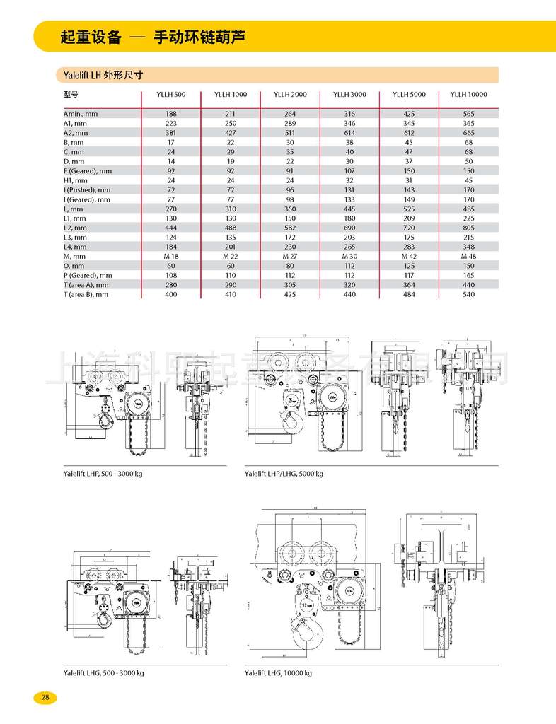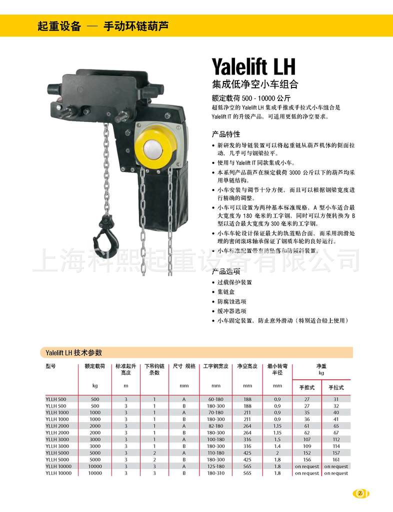 - 本系列产品葫芦额定载荷 3000 公斤以下的葫芦均采用单链结构,净空尺寸更低,特别适合空间受限的应用场合。